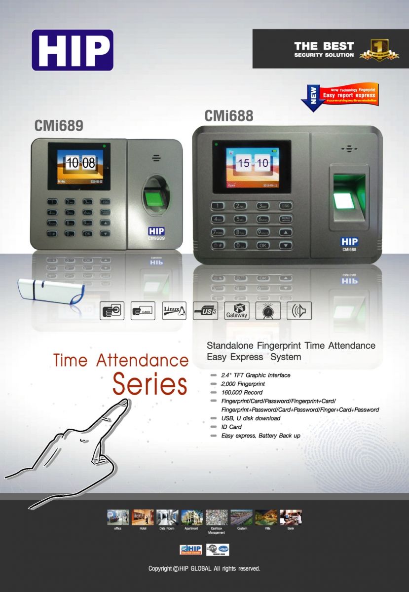 เครื่องสแกนลายนิ้วมือ cmi688 รองรับการสแกนได้ 2 รูปแบบ คือ สแกนลายนิ้วมือและการกดรหัส (ไม่รองรับการทาบบัตร) เก็บลายนิ้วมือได้สูงถึง 2,000 ลายนิ้วมือ โดยที่กำหนดให้ 1 คนเก็บลายนิ้วมือได้ 2 นิ้ว ดังนั้นตัวเครื่องสแกน cmi686 จะสามารถรองรับผู้ใช้งานได้สูงถึง 500 คน เก็บข้อมูลบันทึกเวลาเข้าๆ ออกๆ ได้สูงถึง 100,000 รายการ หมดปัญหาเรื่องข้อมูลเต็มเร็วไปได้เลย นอกจากนี้ตัวเครื่องสแกน cmi686 ยังรองรับได้ทั้ง 2 ภาษา ไทย/อังกฤษ ต้องการเมนูภาษาไหน ต้องการเสียงพูดตอบรับภาษาใด รวมถึงต้องการรายงาน excel ภาษาอะไรเราสามารถเลือกได้เลยโดยข้อมูลทุกอย่างจะเปลี่ยนไปตามรูปแบบภาษาที่เราเลือก นอกจากนี้เครื่องสแกน cmi686 ยังมาพร้อมความเร็วในการทำงานประมวลผลเปรียบเทียบลายนิ้วมือได้ภายใน 1 วินาทีเท่านั้น